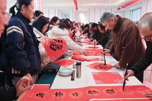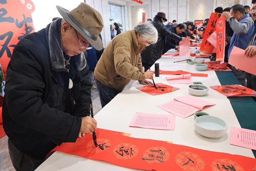 隨著蛇年春節(jié)腳步臨近,活動(dòng)期間還舉辦了“文化惠民”活動(dòng),江蘇省當(dāng)代藝術(shù)創(chuàng)作研究會(huì)的文化學(xué)者揮毫潑墨,寫對聯(lián)、送福字,為大家送來了新年的祝福。